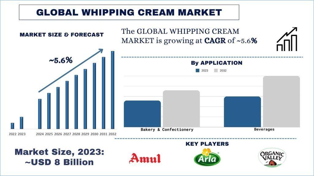According to a new report by UnivDatos, the Whipping Cream Market is projected to reach USD billion by 2032, expanding at a CAGR of approximately 5.6% during the forecast period. The whipping cream market comprises a wide range of products that are extensively used in culinary applications, particularly within the bakery, confectionery, and foodservice industries. The market includes both dairy and non-dairy whipping creams, each designed to address evolving consumer preferences, dietary requirements, and lifestyle choices.