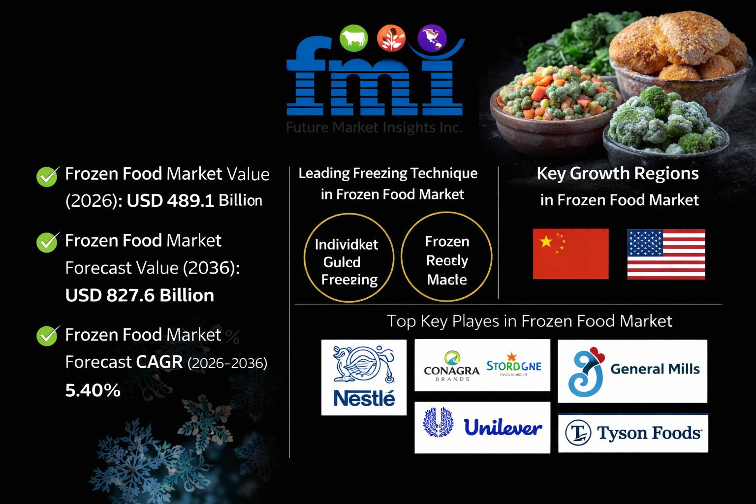 The global frozen food market is poised for sustained expansion as modern lifestyles, urbanization, and evolving dietary preferences continue to reshape food consumption patterns. Valued at USD 489.1 billion in 2026, the market is forecast to reach USD 827.6 billion by 2036, growing at a steady CAGR of 5.40% over the forecast period. This growth positions frozen food as a core pillar of the global food industry, bridging convenience, quality, and nutritional retention.