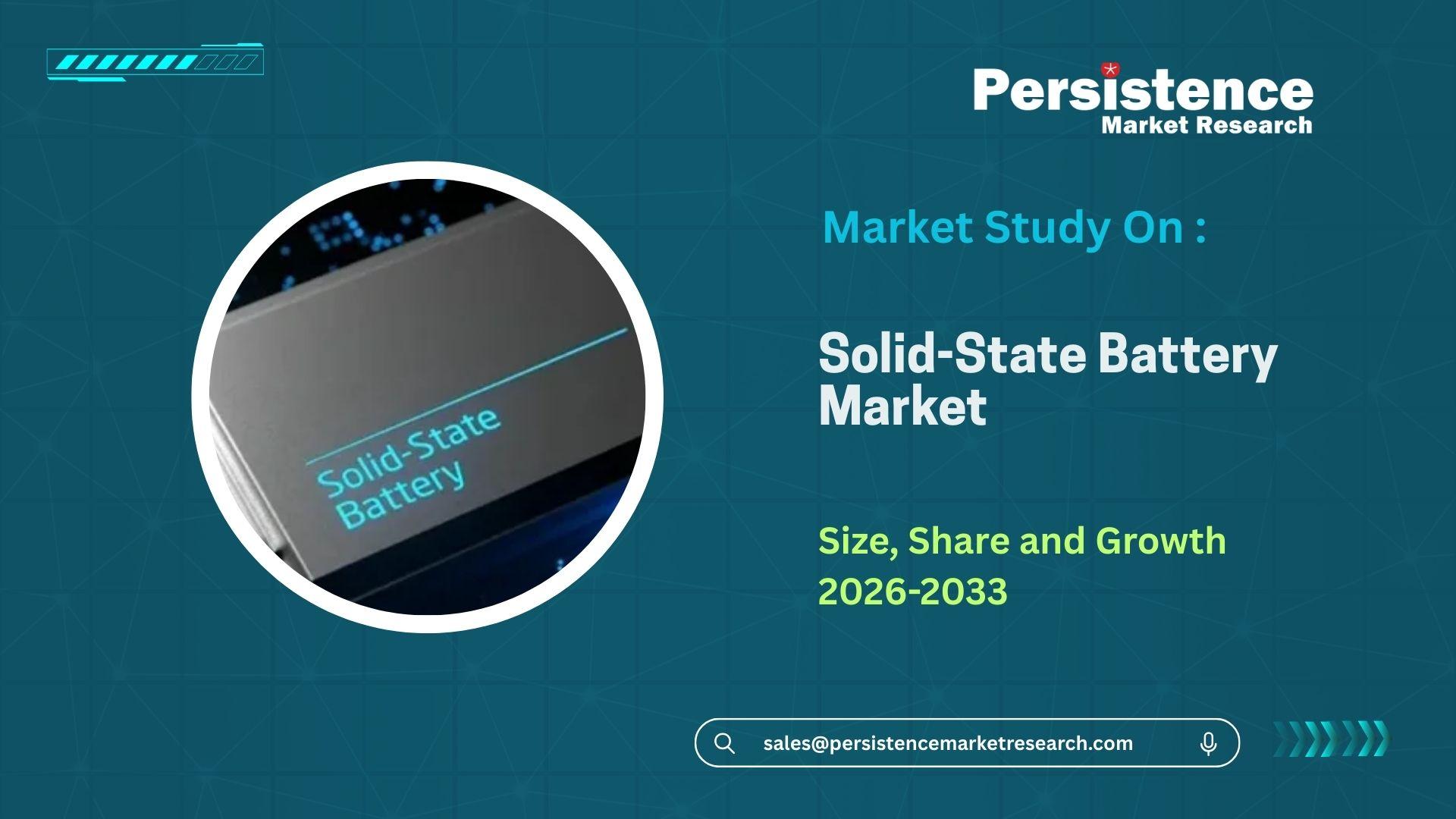 The global solid-state battery market is entering a transformative growth phase as industries accelerate the transition toward safer, higher-energy-density storage solutions. The market is supposed to be valued at US$ 568.5 million in 2026 and is projected to reach US$ 9,533.1 million by 2033, expanding at an exceptional CAGR of 49.4% between 2026 and 2033. Solid-state batteries replace the liquid or gel electrolyte used in conventional lithium-ion batteries with a solid electrolyte, significantly improving safety, thermal stability, and energy density. These performance advantages are making them highly attractive across electric vehicles (EVs), consumer electronics, aerospace, and renewable energy storage systems. As governments and private players intensify decarbonization efforts, solid-state technology is rapidly shifting from laboratory-scale innovation to commercial-scale manufacturing.