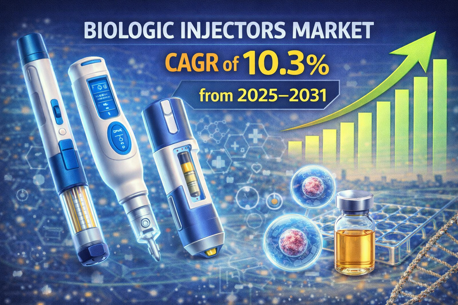 The Global Biologic Injectors Market is poised for significant expansion by 2031, driven by rising prevalence of chronic diseases, advancements in biologic therapeutics, and increasing adoption of patient‑centric delivery systems. Biologic injectors—critical devices for administering complex biologic drugs such as monoclonal antibodies, peptide therapies, and other biologics—are becoming indispensable in modern healthcare due to their ability to enhance drug efficacy, improve dosing accuracy, and enable self‑administration outside traditional clinical settings. Rapid developments in smart injector technologies and digital health integration are further boosting market demand across regions. According to industry forecasts, the global market is expected to grow at a robust compound annual growth rate (CAGR) of approximately 10.3% from 2025 through 2031, reflecting strong future potential.