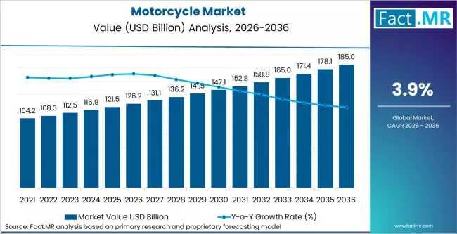 The global motorcycle industry is undergoing a profound structural transformation, evolving from a traditional transport sector into a bifurcated powerhouse of urban utility and high-end lifestyle experiences. Valued at USD 121.50 billion in 2025, the market is projected to climb to USD 126.24 billion in 2026, before accelerating to a commanding USD 185.07 billion by 2036.