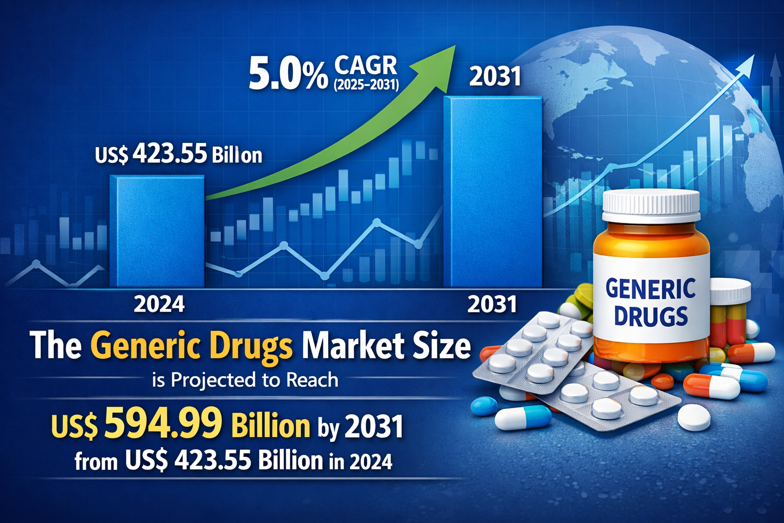 In this evolving landscape, Generic Drugs Market Key Players are focusing on partnerships, acquisitions, and product portfolio expansion to gain competitive advantage. The generic drugs market size is projected to reach US$ 594.99 billion by 2031 from US$ 423.55 billion in 2024. The market is expected to register a CAGR of 5.0% during 2025–2031. These players are capitalizing on patent expirations of blockbuster drugs and increasing regulatory support for generics to enhance their market share across both developed and developing regions.