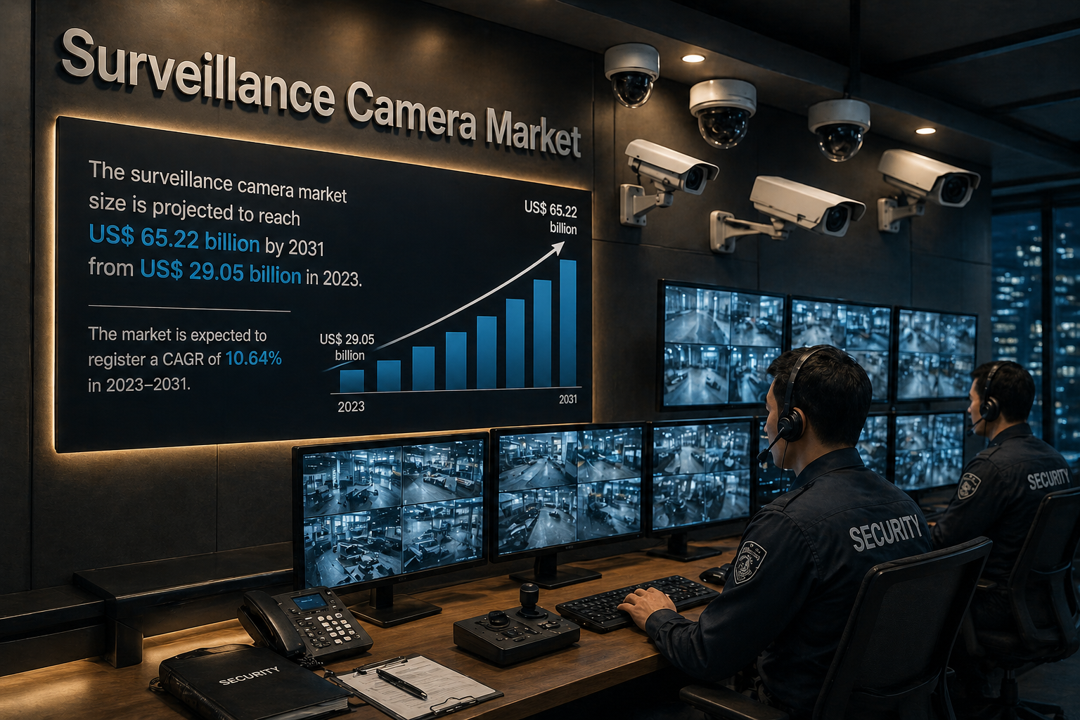 The Surveillance Camera Market is experiencing significant growth due to rising global security concerns and increasing adoption of advanced monitoring technologies. According to The Insight Partners, the market is projected to grow from US$ 29.05 billion in 2023 to US$ 65.22 billion by 2031, registering a CAGR of 10.64% during the forecast period. For detailed insights, refer to the Surveillance Camera Market Growth, which highlights how demand across commercial, residential, and government sectors is driving market expansion.