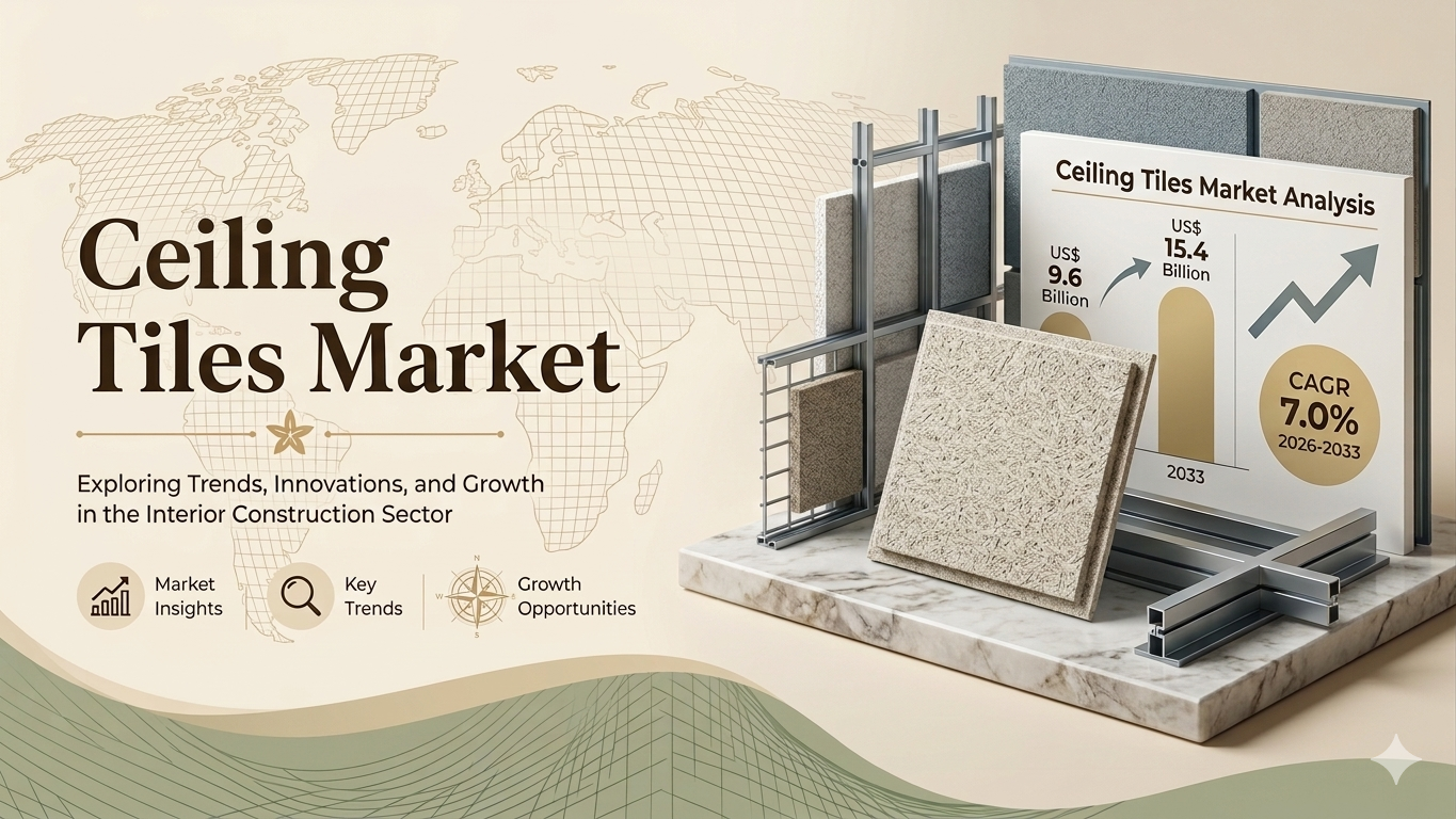 The global ceiling tiles market is poised for steady expansion, with the market size expected to reach US$ 9.6 billion in 2026 and further grow to US$ 15.4 billion by 2033, registering a CAGR of 7.0% during the forecast period. Ceiling tiles play a crucial role in modern construction by enhancing acoustics, thermal insulation, and aesthetic appeal across commercial, residential, and industrial buildings. The growing demand for sustainable construction materials, along with the rise in renovation activities in developed economies, is fueling market growth. Additionally, increasing investments in infrastructure development and smart buildings are creating significant demand for innovative ceiling solutions globally.