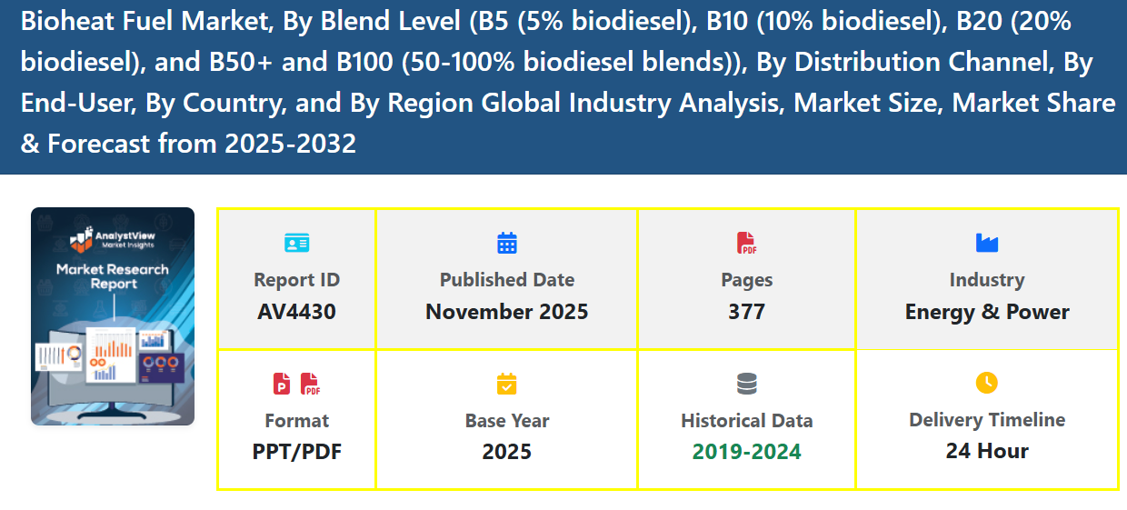 The Bioheat Fuel Market is gaining significant momentum as global energy systems shift toward sustainable, low-carbon solutions. Bioheat fuel—produced by blending traditional heating oil with renewable biodiesel derived from sources such as soybean oil, animal fats, used cooking oil, and algae—offers an immediate pathway to reduce emissions without requiring major infrastructure changes. This makes it an attractive alternative for residential, commercial, and industrial heating applications seeking cleaner and more efficient energy options.