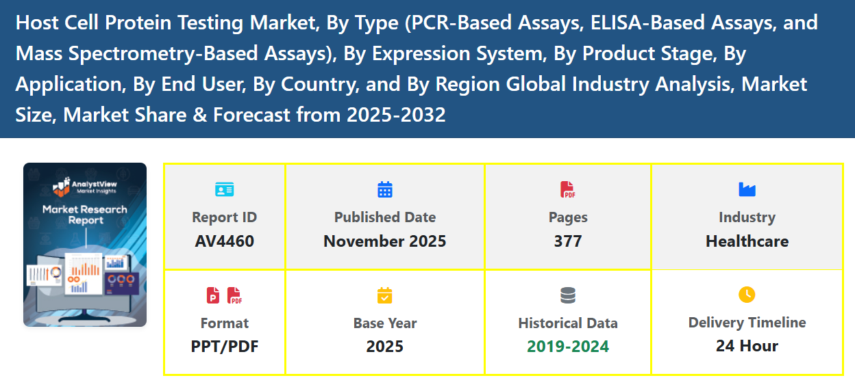 The Host Cell Protein (HCP) Testing Market is rapidly growing as biotechnology, pharmaceutical manufacturing, and biologics development continue to expand globally. HCP testing is a critical quality control step used to detect and quantify residual proteins originating from host cells during the production of biologics such as monoclonal antibodies, vaccines, cell therapies, and recombinant proteins. These impurities must be removed to ensure product safety, stability, and regulatory compliance.