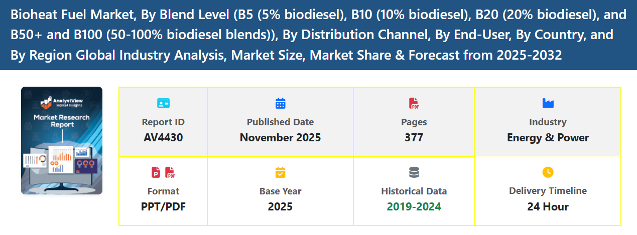The Bioheat Fuel Market is gaining significant momentum as global energy systems shift toward sustainable, low-carbon solutions. Bioheat fuel—produced by blending traditional heating oil with renewable biodiesel derived from sources such as soybean oil, animal fats, used cooking oil, and algae—offers an immediate pathway to reduce emissions without requiring major infrastructure changes. This makes it an attractive alternative for residential, commercial, and industrial heating applications seeking cleaner and more efficient energy options.